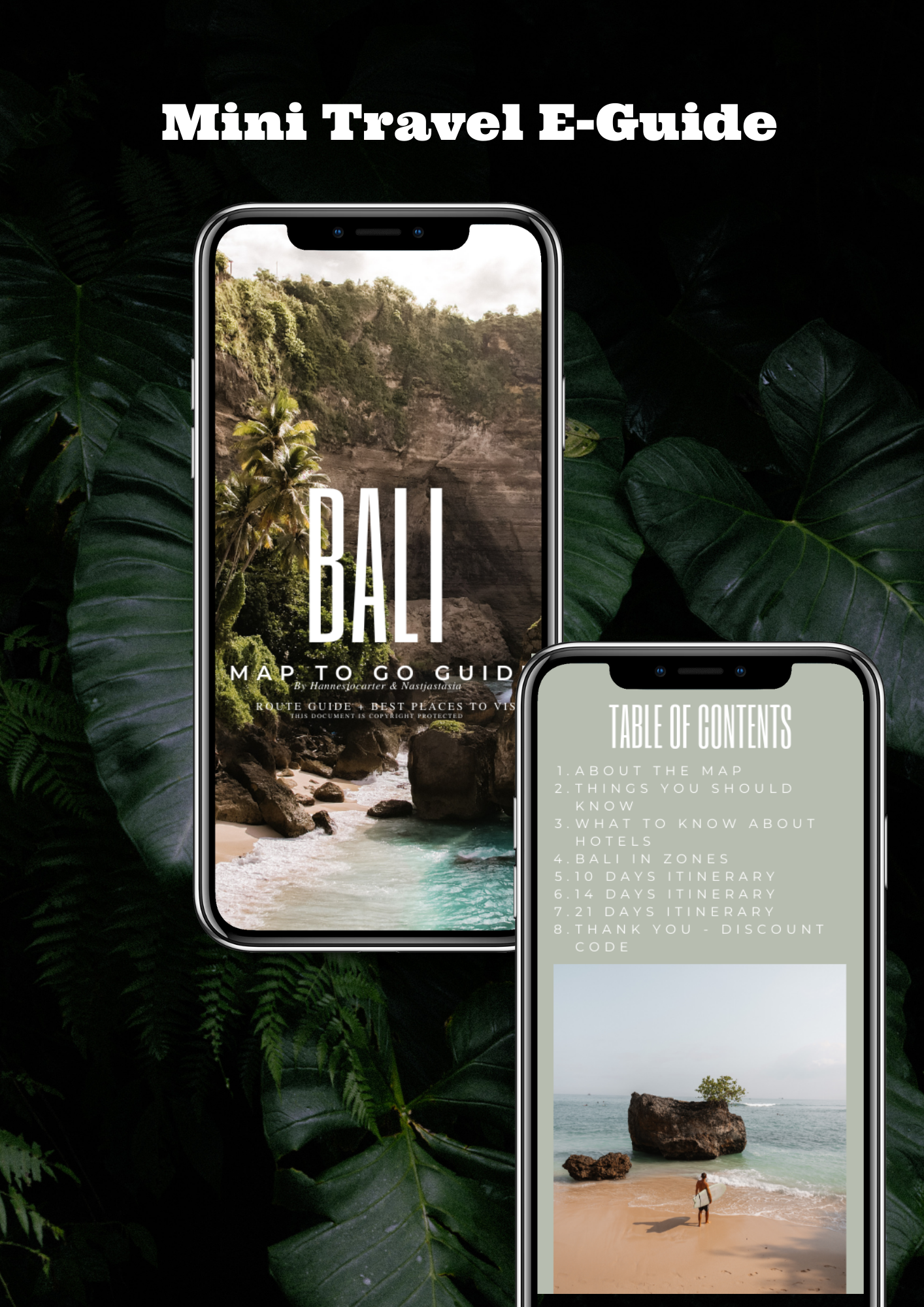 Du erhältst Zugang zu unserer Interaktiven Google Maps Karte mit all unseren Empfehlungen. Verpasse nie wieder coole Spots in deiner Nähe. Wir haben über ein halbes Jahr auf Bali gelebt und fast alles gesehen und können dir somit besten Gewissens die coolsten Orte empfehlen.