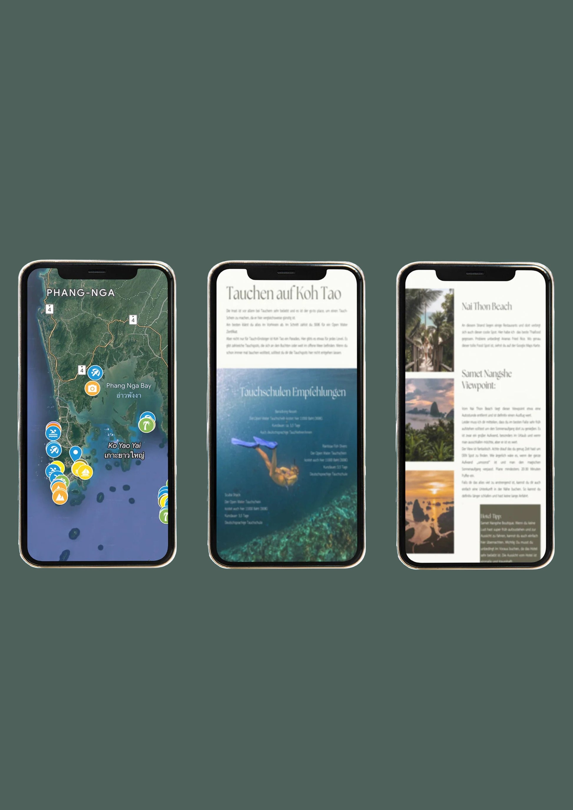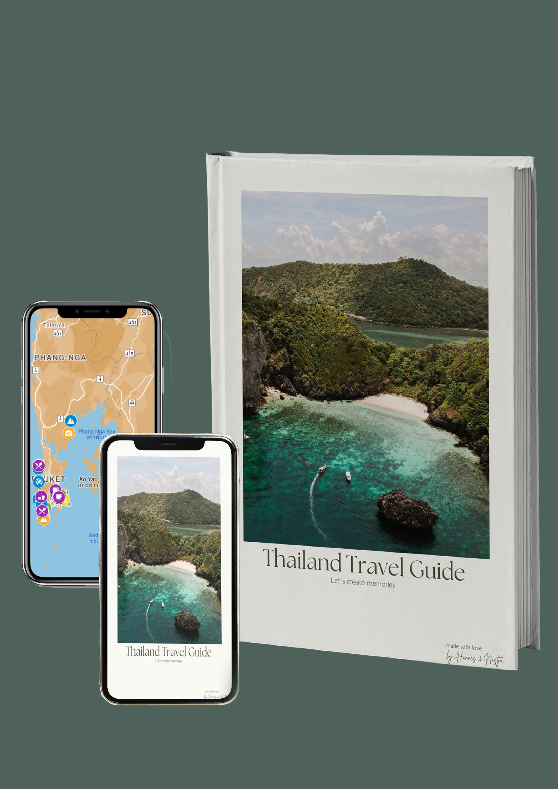 In diesem Reiseführer (E-Book) findest du meine Lieblingsplätze, die besten Restaurants, Insiderwissen und wichtige Tipps für deine perfekte Reise nach Thailand. Thailand ist riesig und es gibt so viel zu entdecken. Wir fokussieren uns in diesem Guide auf den Süden Thailands (Phuket, Koh Phi Phi, Krabi, Koh Phangan und Koh Tao + Bangkok) und helfen dir dabei, dass deine Reise unvergesslich wird. *Derzeit gibt es den Reiseführer nur als E-Book.